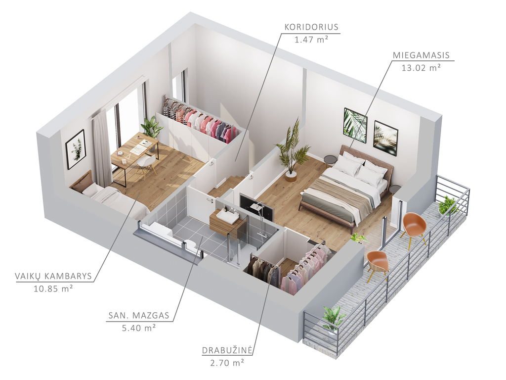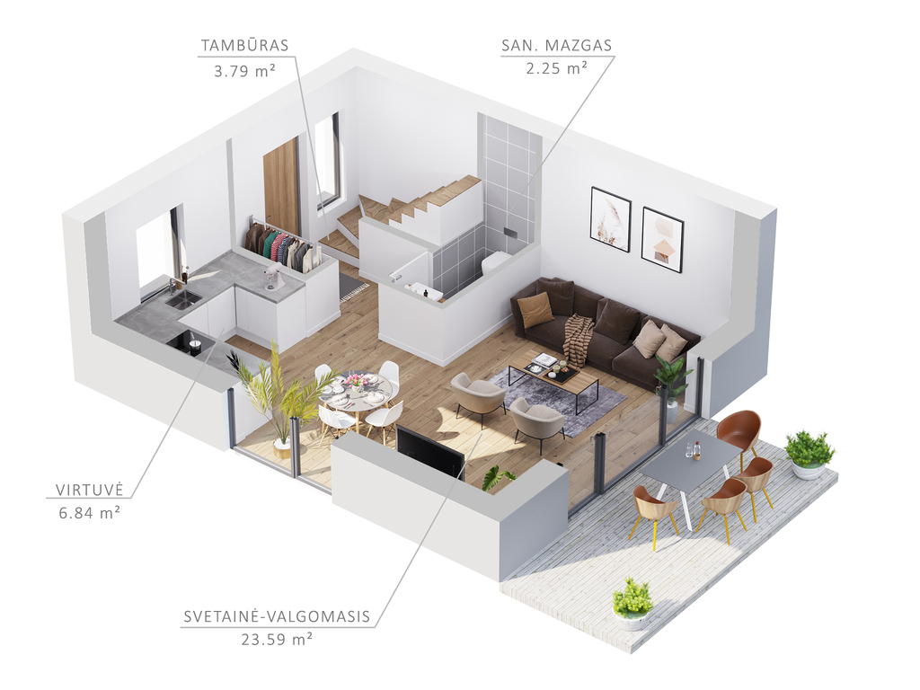 • Dviejų tipų namai: 70 ir 90 kv. m ploto