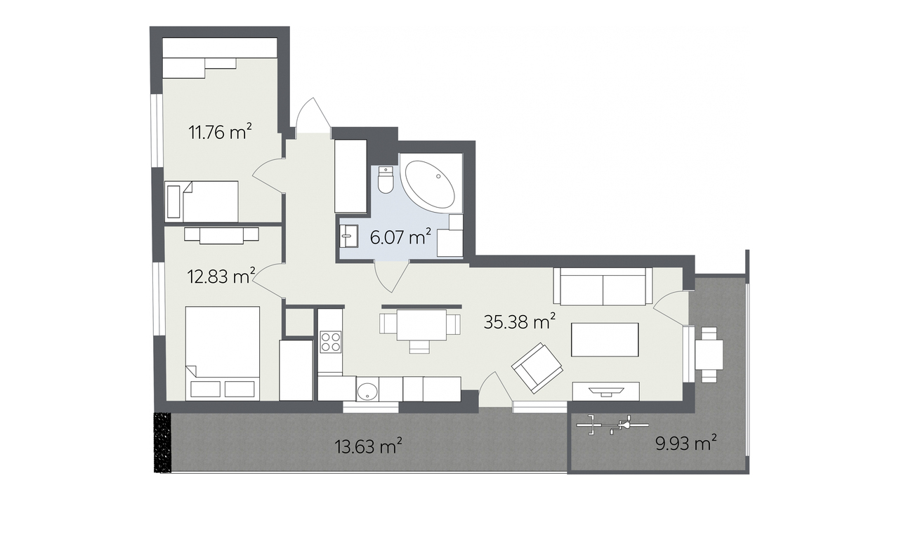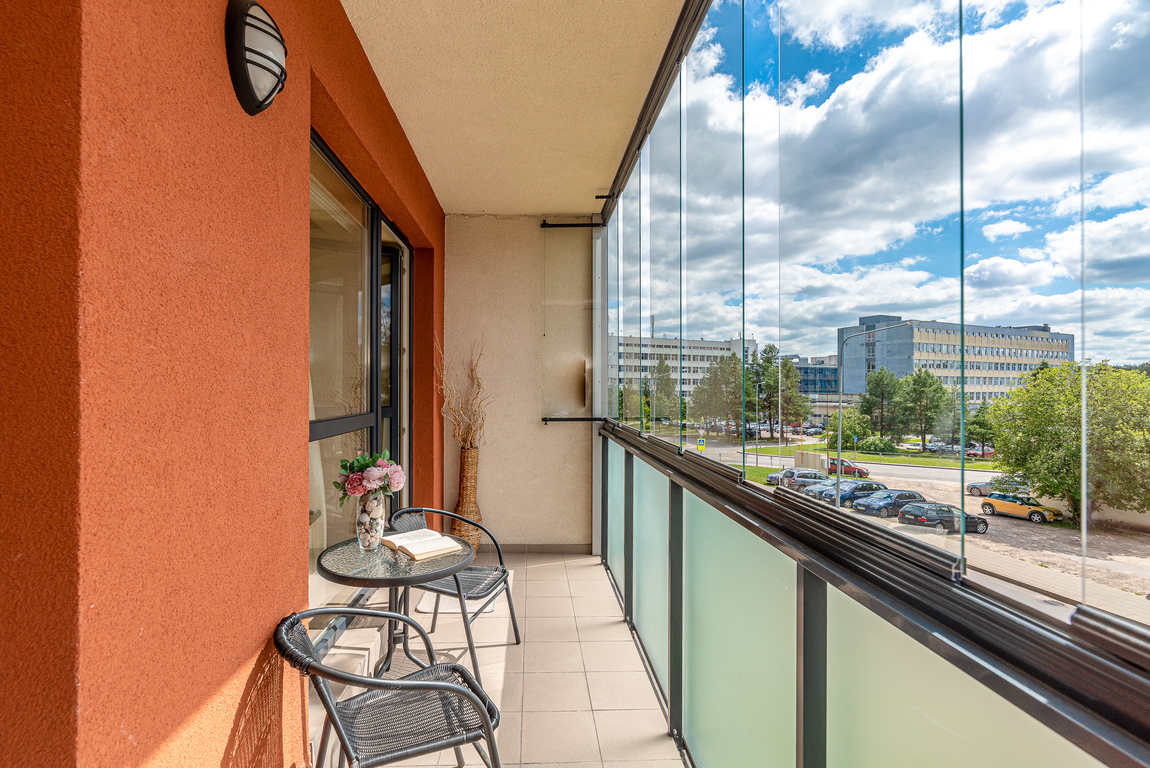 • Erdvus balkonas, su atskirta erdve daiktų pasidėjimui;
