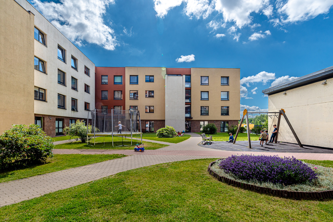 • Tvarkinga, uždara vaikų žaidimų aikštelė, vidiniame kieme;