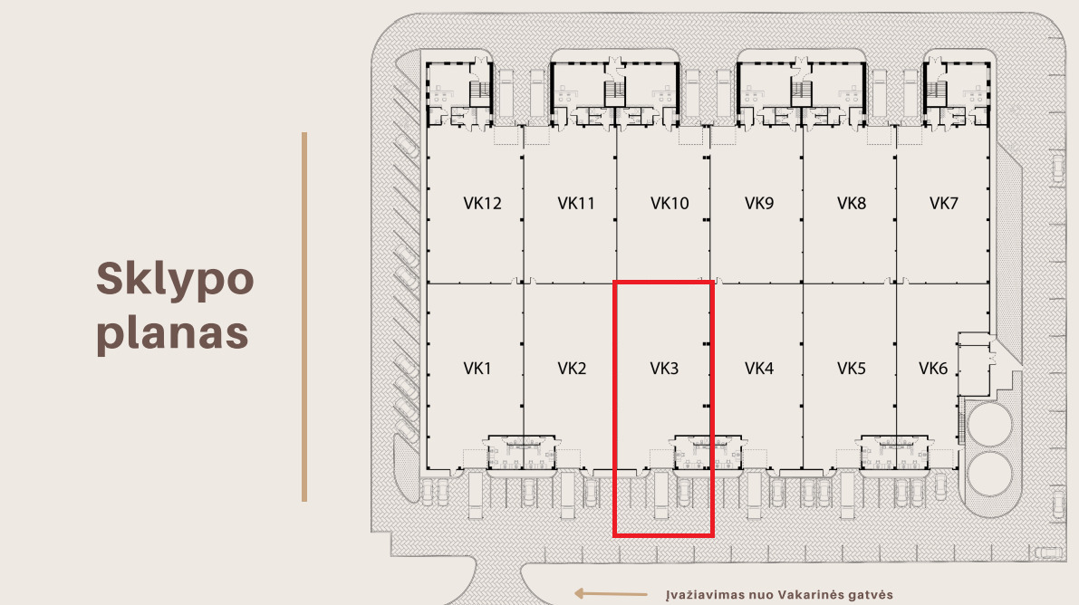 – Siūlomas plotas nuomai: 440. 32 kv.m (su matomumu nuo Vakarinės g.);