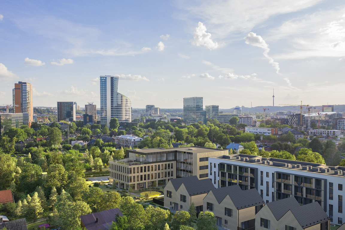 Nuomojamos komercinės patalpos naujai statomame verslo centre Kintų g., Vilnius.