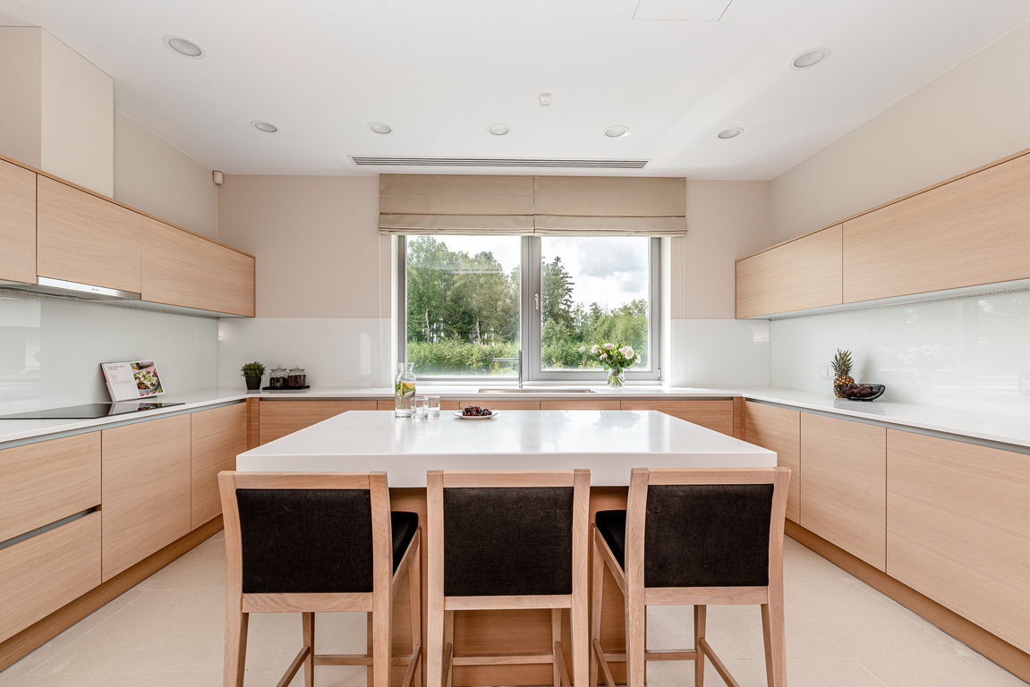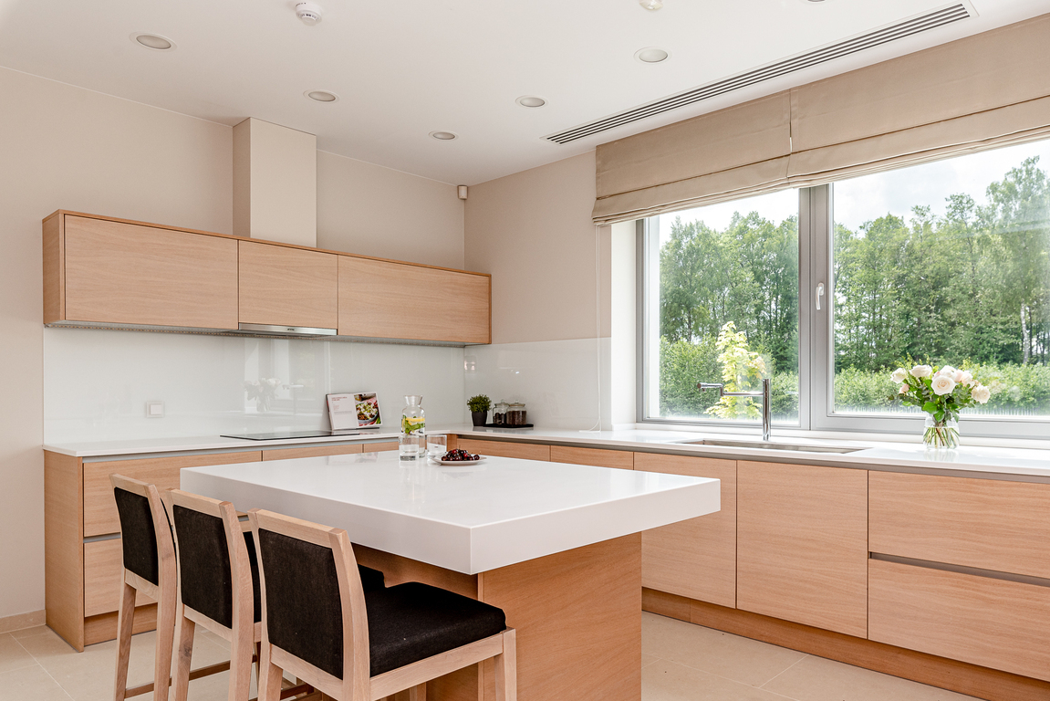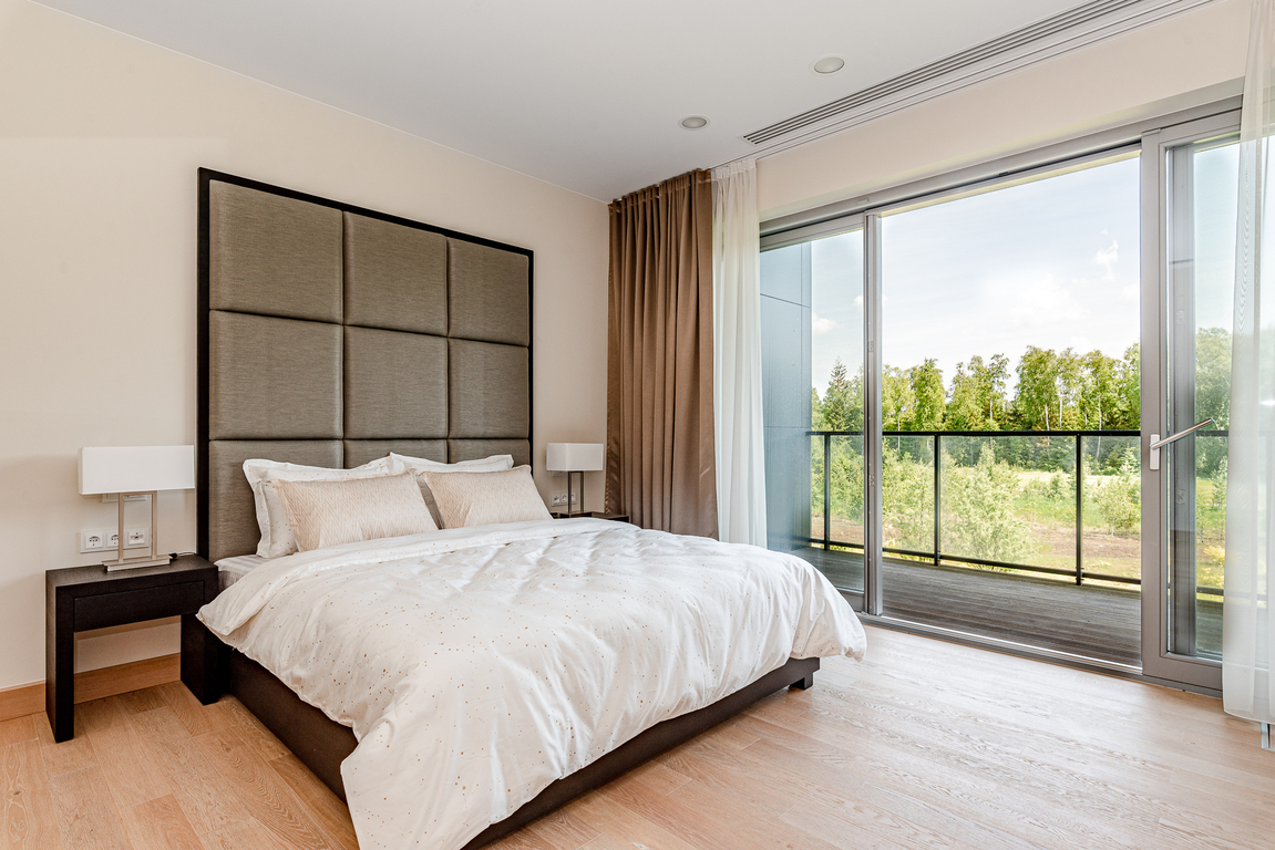 • bendras svetainės ir išskirtinės virtuvinės salos kambarys su aukštomis lubomis, panoraminiu langu bei 40 kv.m. terasa;