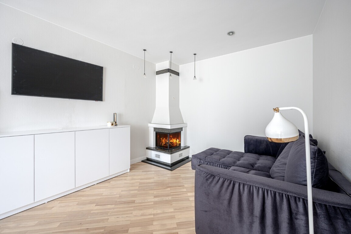 Viduje įrengti kondicionieriai, o ramybe padės mėgautis svetainėje esantis židinys.