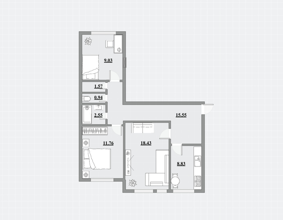 • Kambarių skaičius – 3;