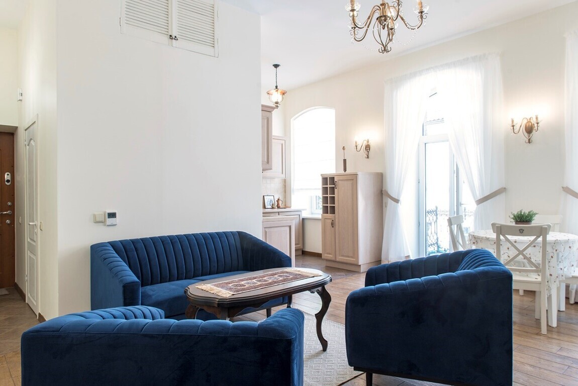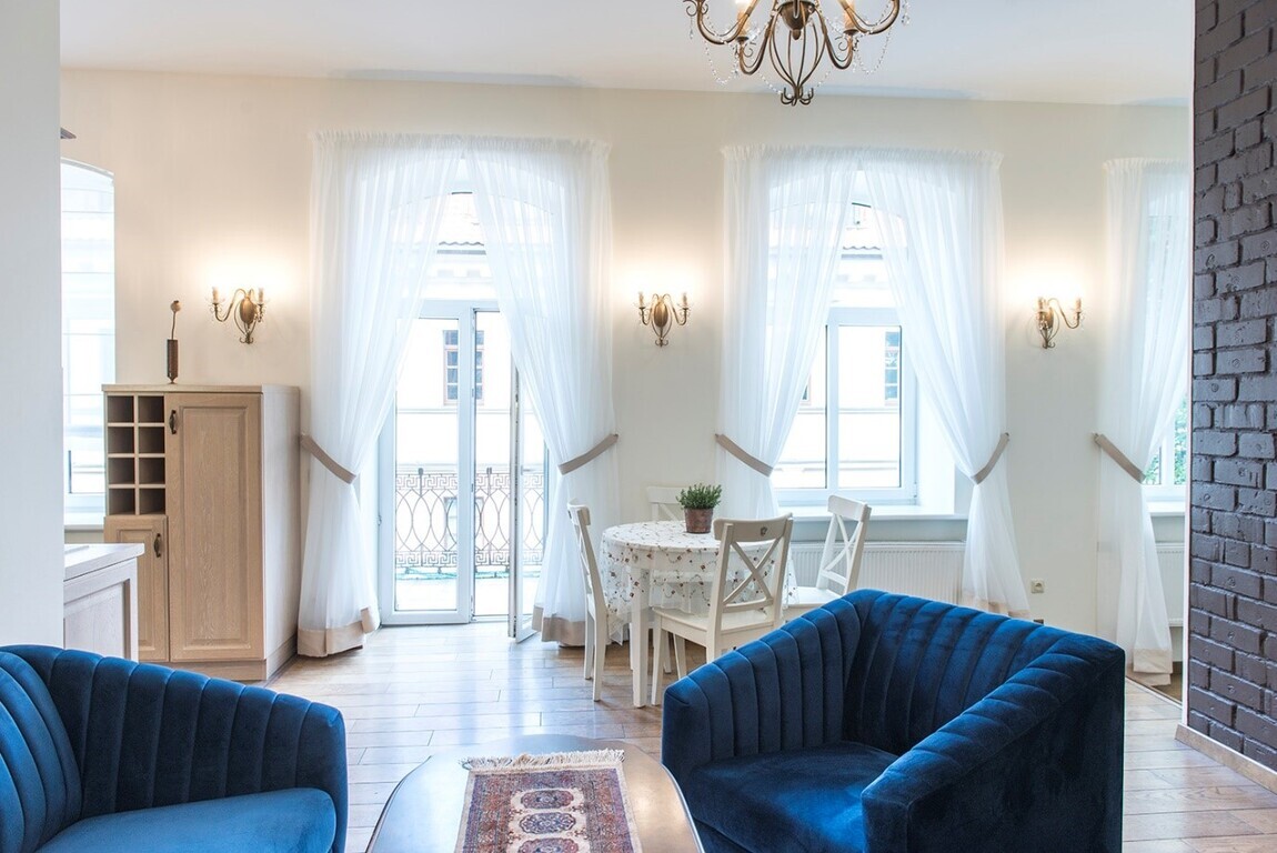 • Butas šviesus, keturi dideli, arkos formos langai, su plačiomis palangėmis, aukštos lubos.