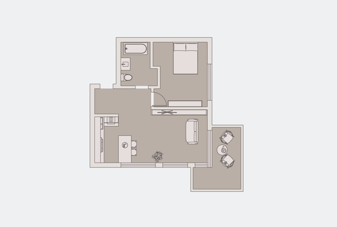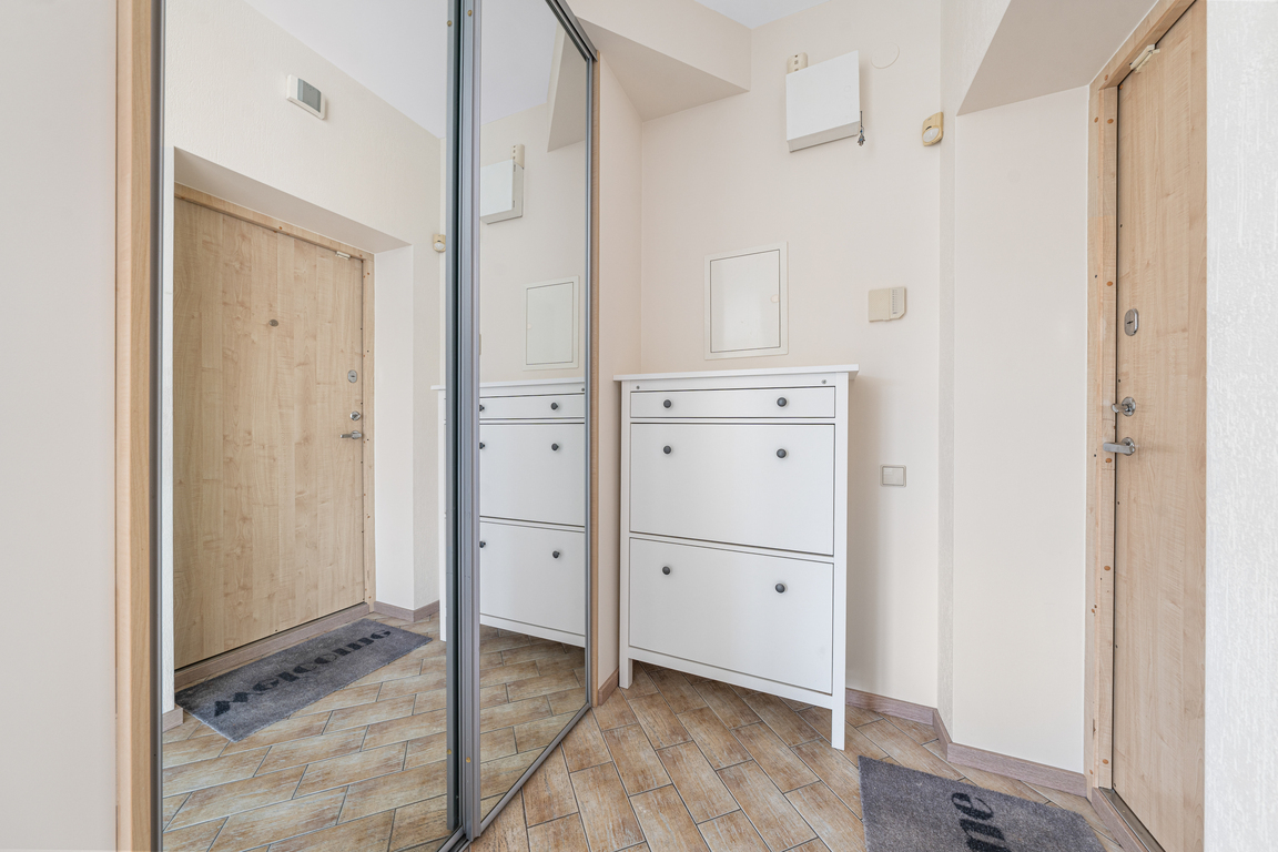 Balkonas taip pat atnaujintas – pakeistos plytelės, todėl čia jauku leisti laiką bet kuriuo metų laiku. Butas iš karto tinkamas gyvenimui: tvarkingas, šviesus ir jaukiai įrengtas.