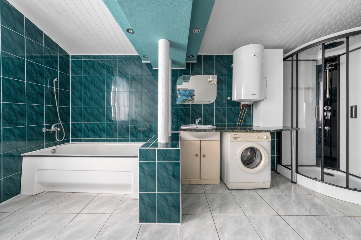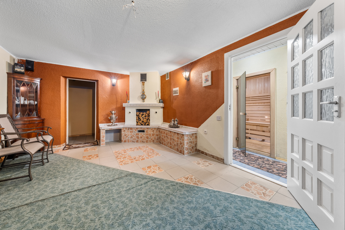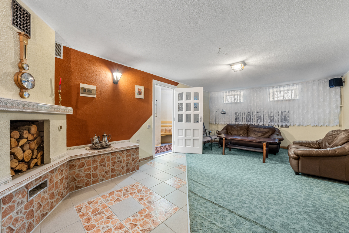 Didelis privalumas – beveik 97 kv. m rūsys, dviejų automobilių garažas ir įrengta pirtis. Katilinėje įrengti dujinis ir kieto kuro katilai, leidžiantys patiems pasirinkti šildymo būdą.