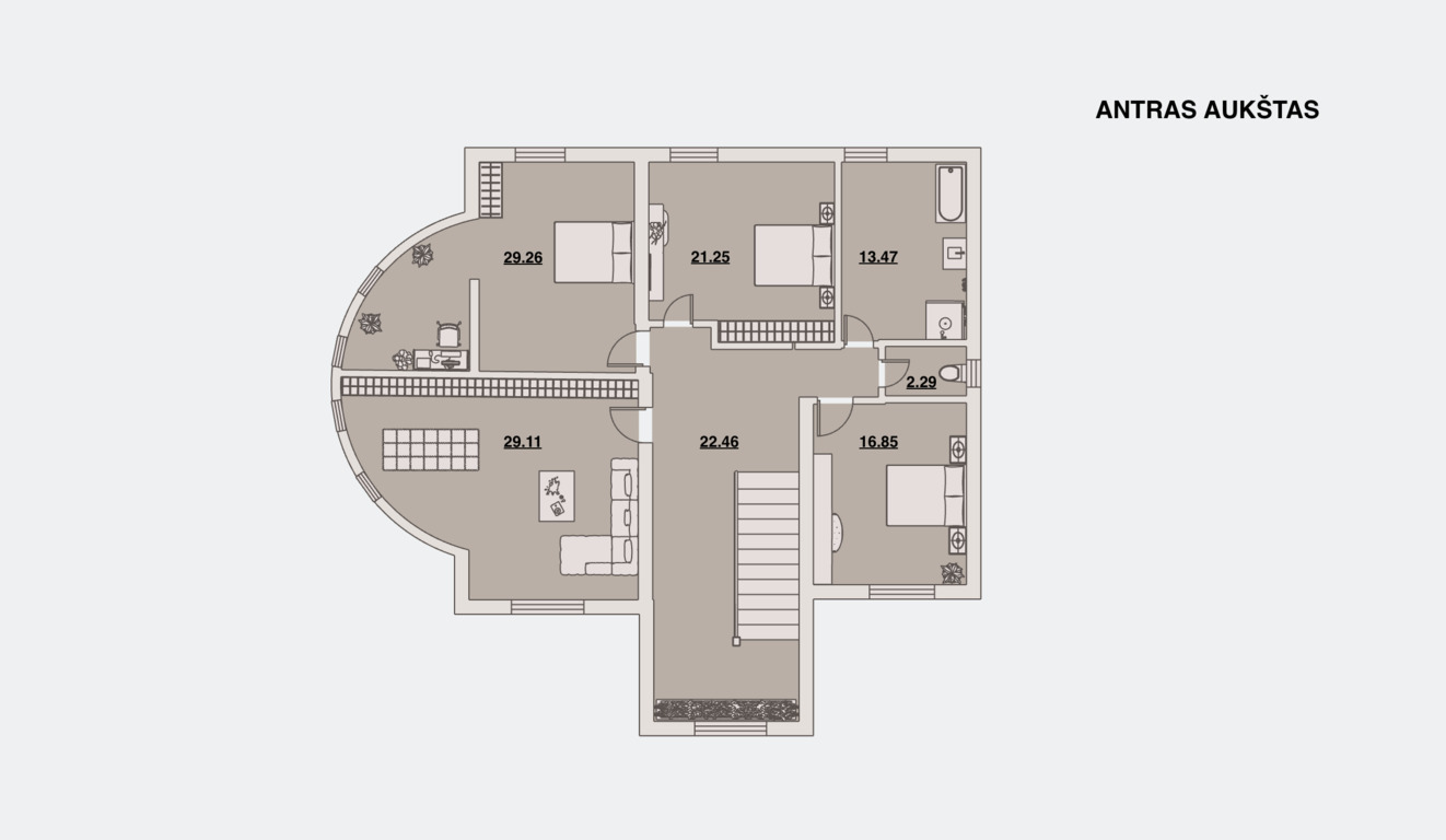 • Miegamųjų kambarių skaičius – 4/5;