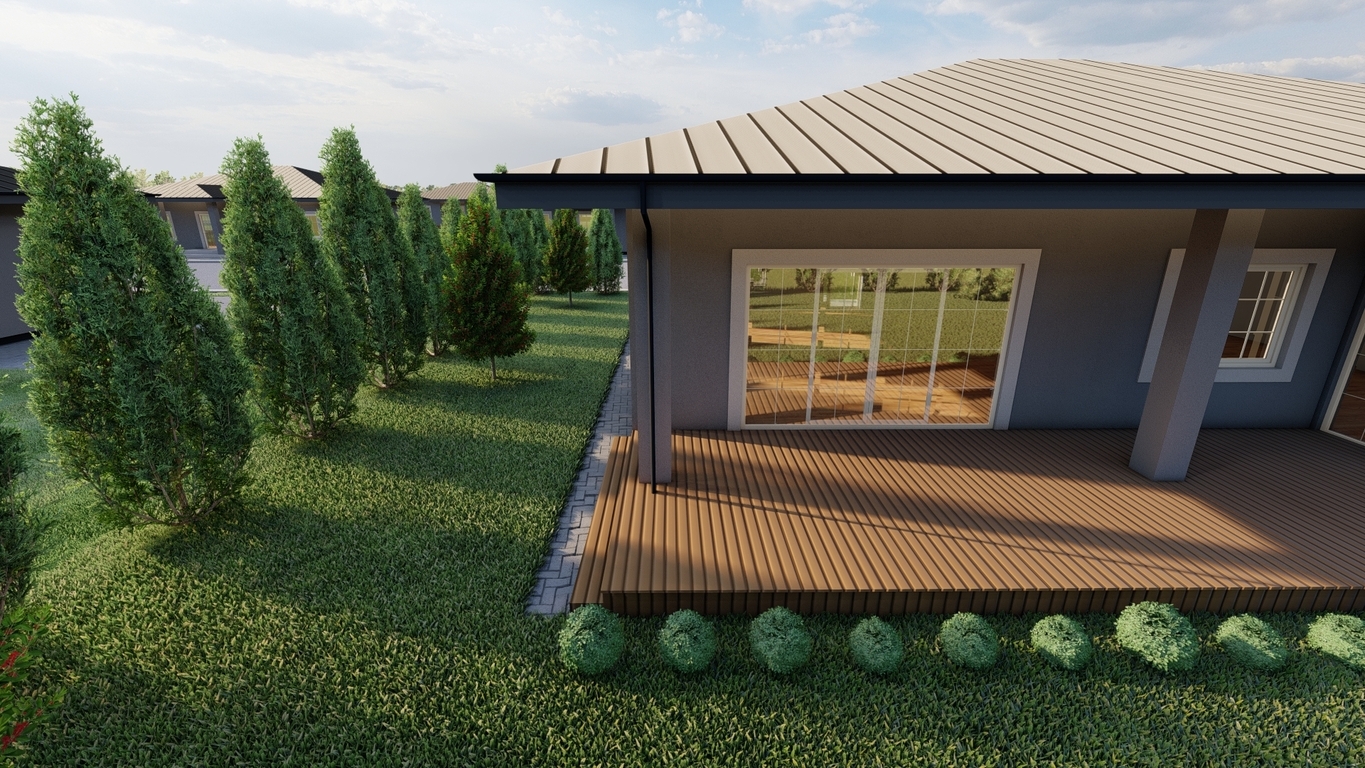 • Trinkelės, veja, tvora, terasa.