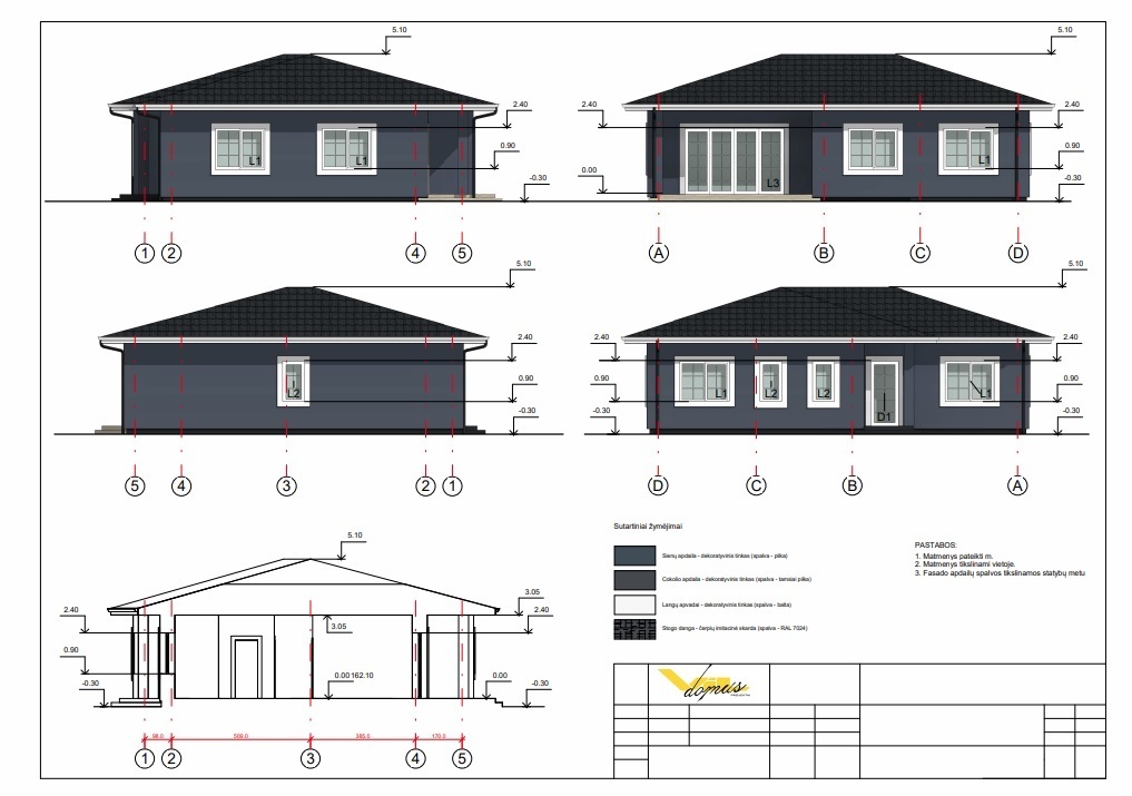 • Pastato išorės apdaila – spalvotas dekoratyvinis silikoninis tinkas;