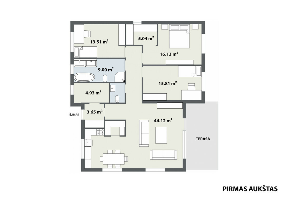 • Namo plotas – 123 m2;