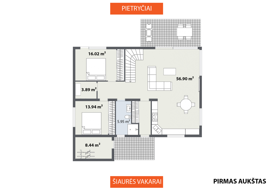 • Papildomos patalpos – sandėliukas ir skalbykla/garderobinė;