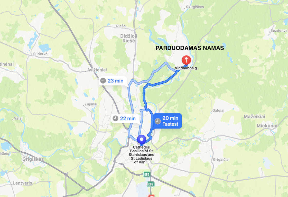 • Atstumas iki miesto centro – už 14km Vilniaus Arkikatedra;