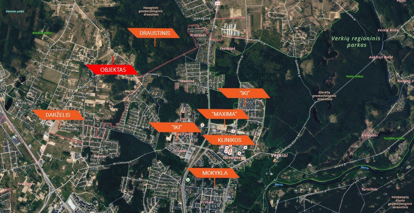 • Mokyklų – 3.3 km iki Vilniaus Abraomo Kulviečio vidurinės mokyklos, 3.84 km iki Vilniaus Gabijos gimnazijos.