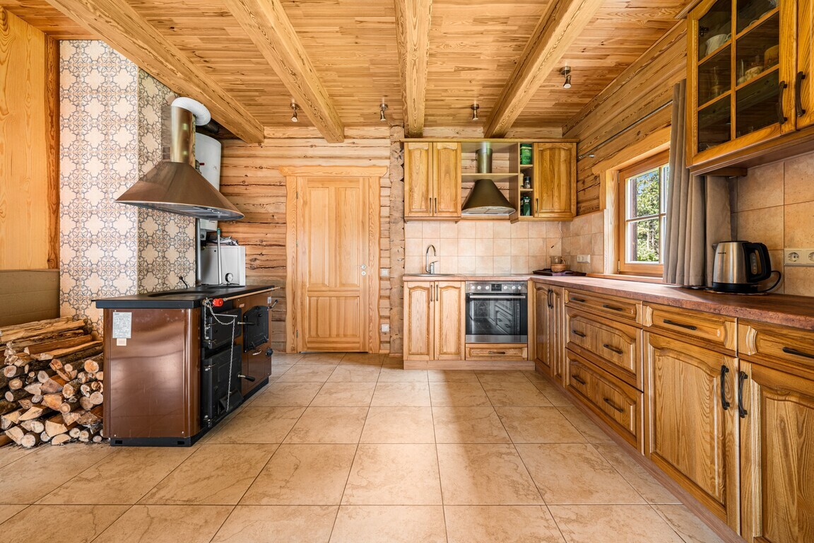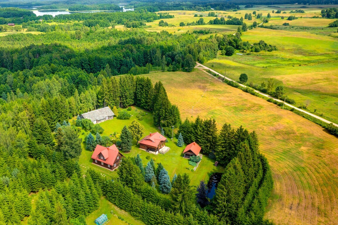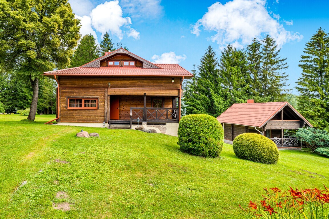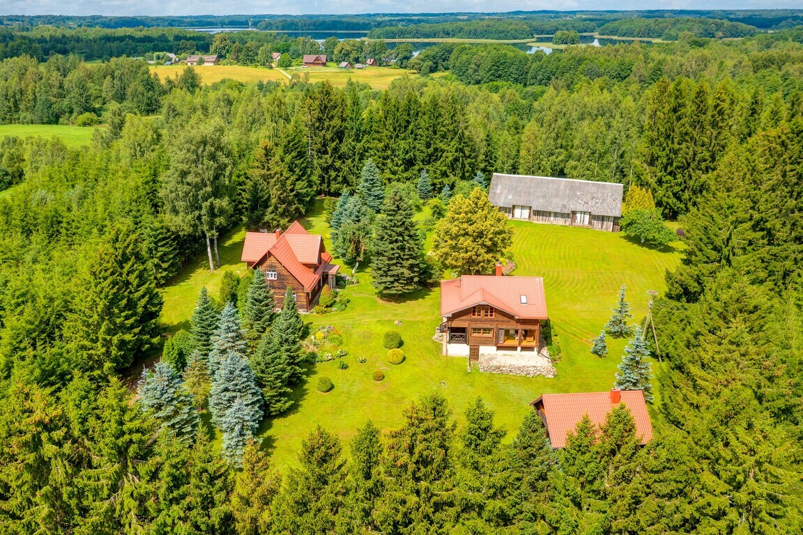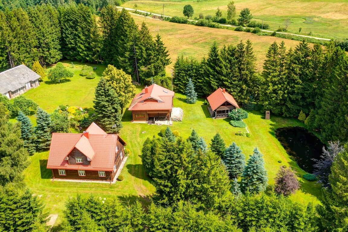 • Trys pilnai įrengti rąstiniai pastatai: gyvenamasis namas, svečių namas ir pirties namelis
