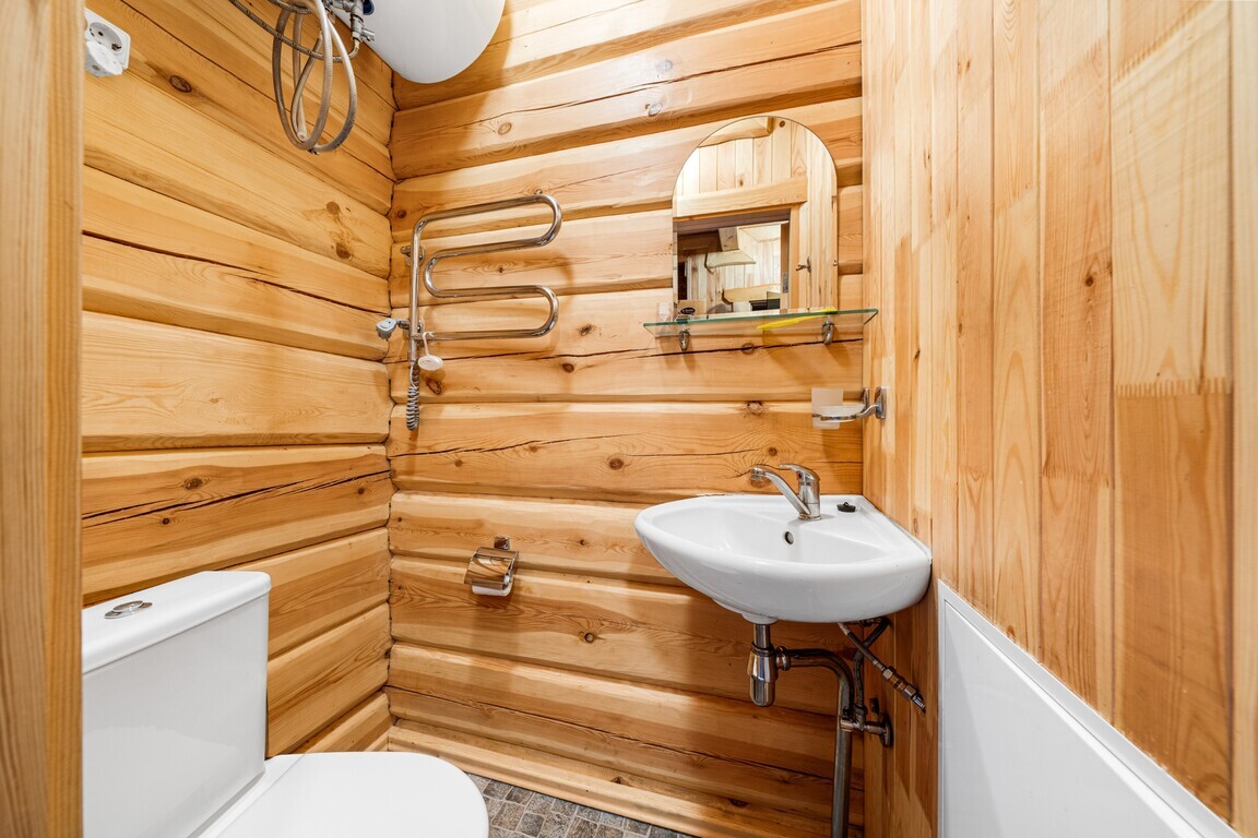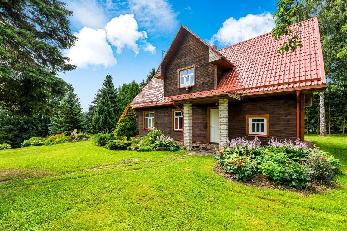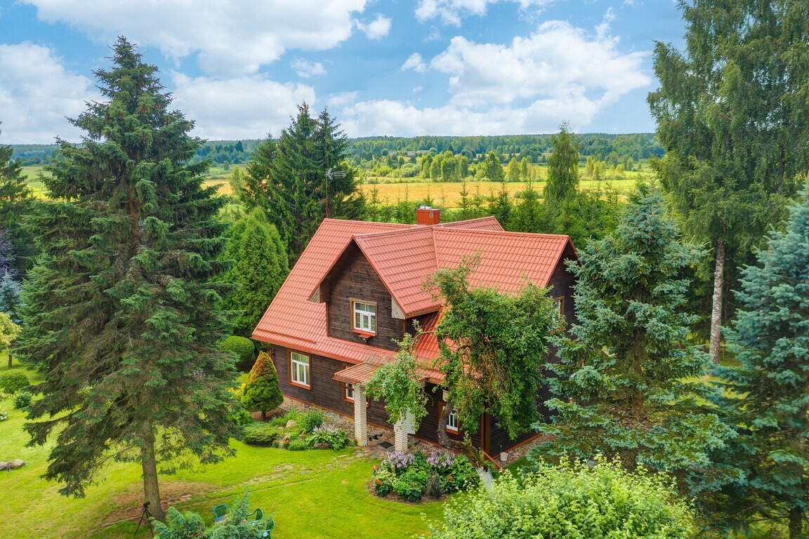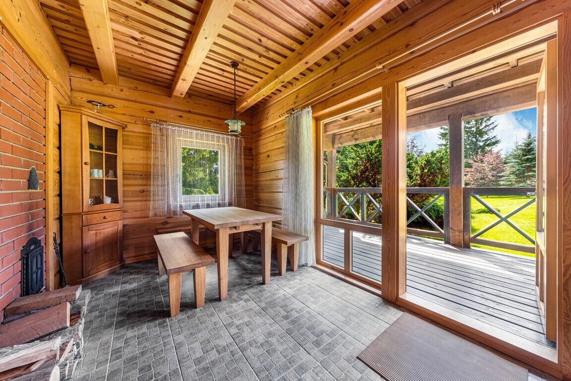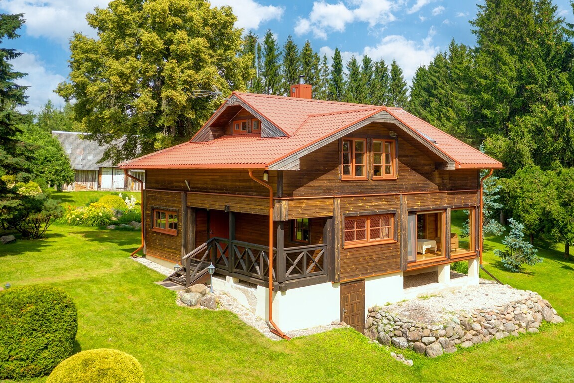 • Trys pilnai įrengti rąstiniai pastatai: gyvenamasis namas, svečių namas ir pirties namelis